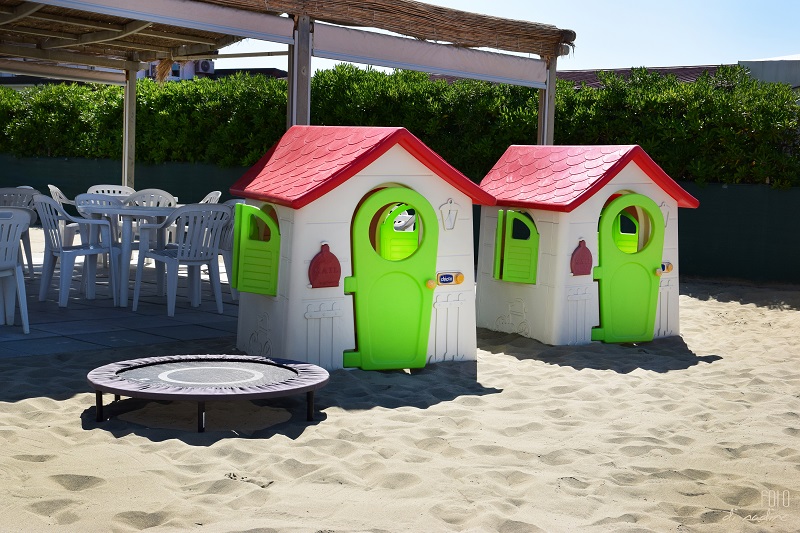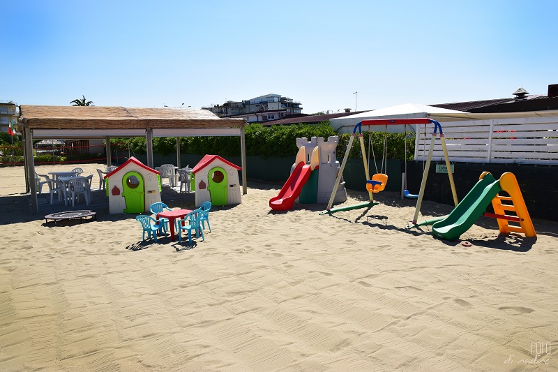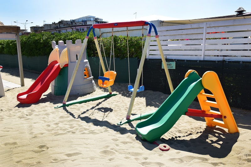 Ampio spazio giochi per bambini direttamente sulla spiaggia con scivoli, altalene e molto altro. Tavolo da ping pong regolamentare al coperto.